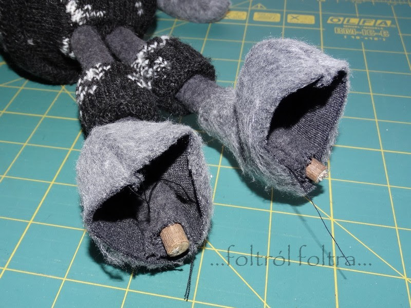 majd feltuszkoljuk a "harisnyás" lábakra.